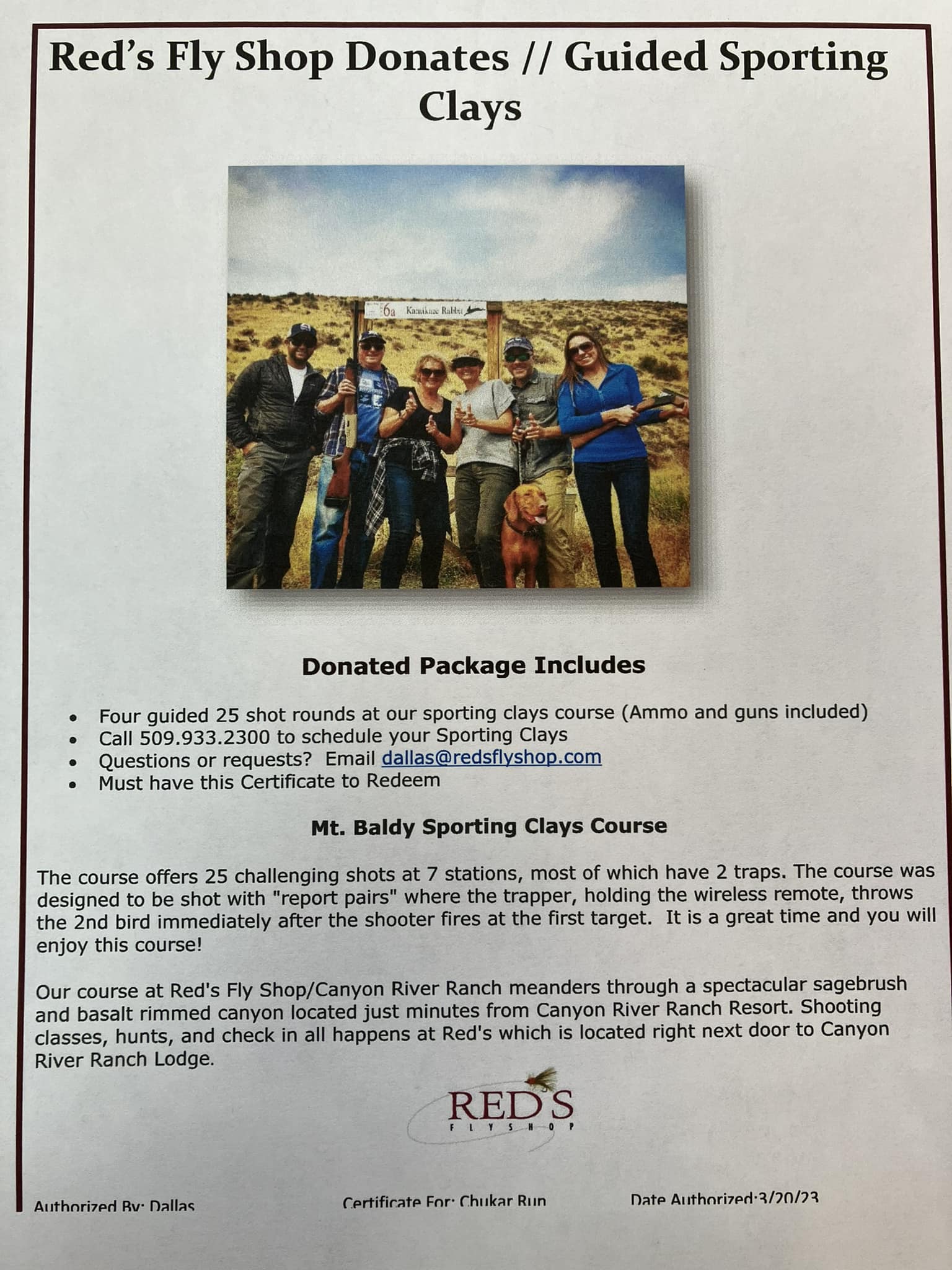 Throughout the years, memberships and the Chukar Run remain the pillars of our fundraising efforts and your support is most sincerely appreciated.